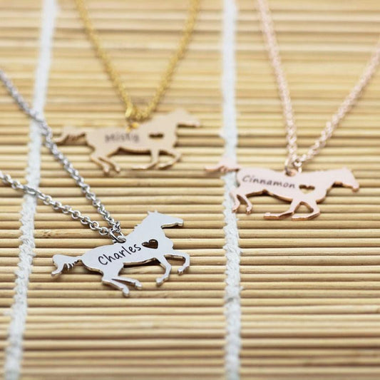 Personalized Horse Silhouette Necklace with Name Engraving