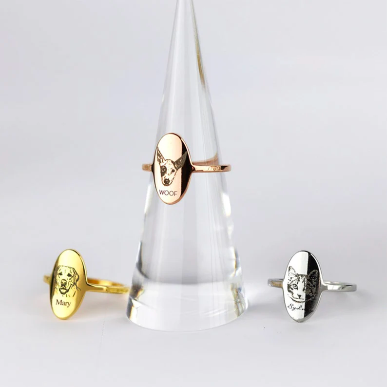 Personalized Pet Photo Ring - Custom Engraved Portrait Jewelry